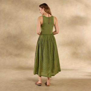 Soon to be your go-to casual fit. our easy popover tank dress is detailed with mixed rib. woven eyelet and raw edge ruffles at the waistline. Side seam pockets. lined skirt. Cotton. Machine wash. Imported. Exclusive. Sizes XXS (00). XS (0–2). S (4–6). M (8–10). L (12–14). XL (16–18). Approx. 49l.