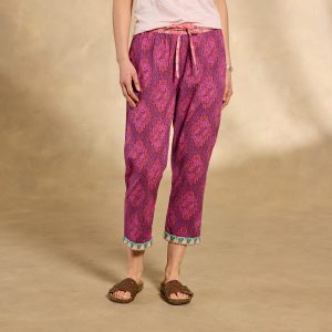 Perfectly comfortable for lounging. yet pretty enough to wear out on the town. Relaxed fit. drawstring pants in a vibrant print. Cotton. Machine wash. Imported. Exclusive. Sizes XS (0-2). S (4-6). M (8-10). L (12-14). XL (16-18). 23 inseam.