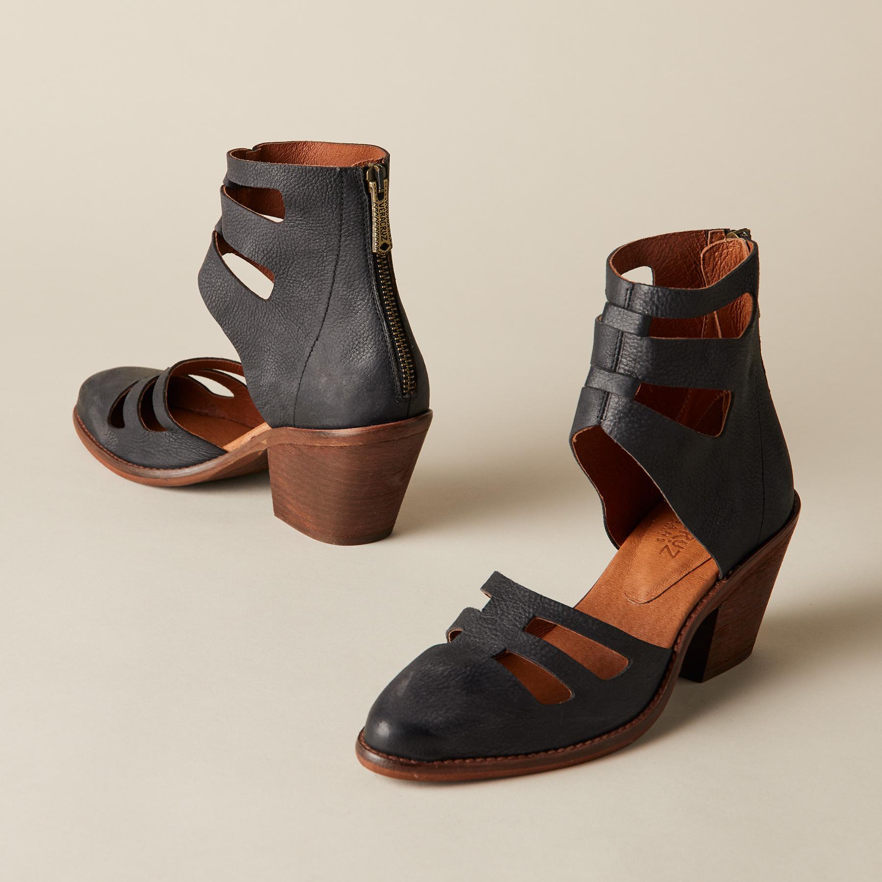 These distinctive boots with cutouts and a back zipper lend an architectural appeal. Leather. Imported. Exclusive. Sizes 36 to 41. 36 (US 6). 37 (US 7). 38 (US 8). 39 (US 9). 40 (US 9.5). 41 (US 10). 2-3/4 heel.