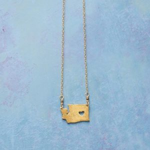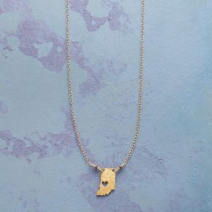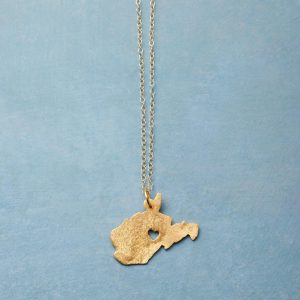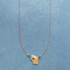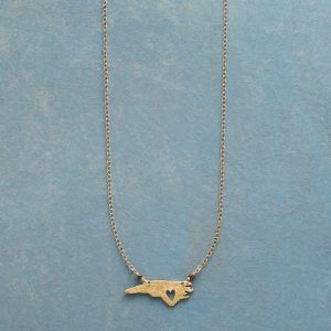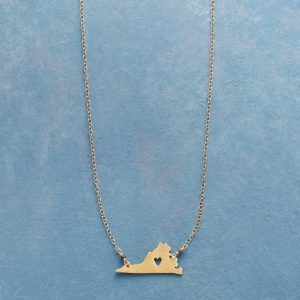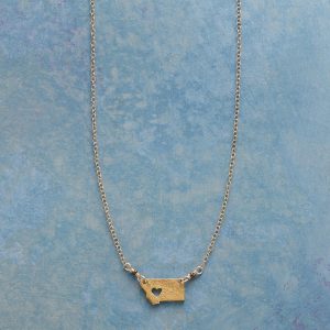 Celebrate your favorite state with our 18kt gold-plated charm strung on a 14kt gold-filled chain. A cut-out heart shows your love. Lobster clasp. Handcrafted. Exclusive. 17-18l