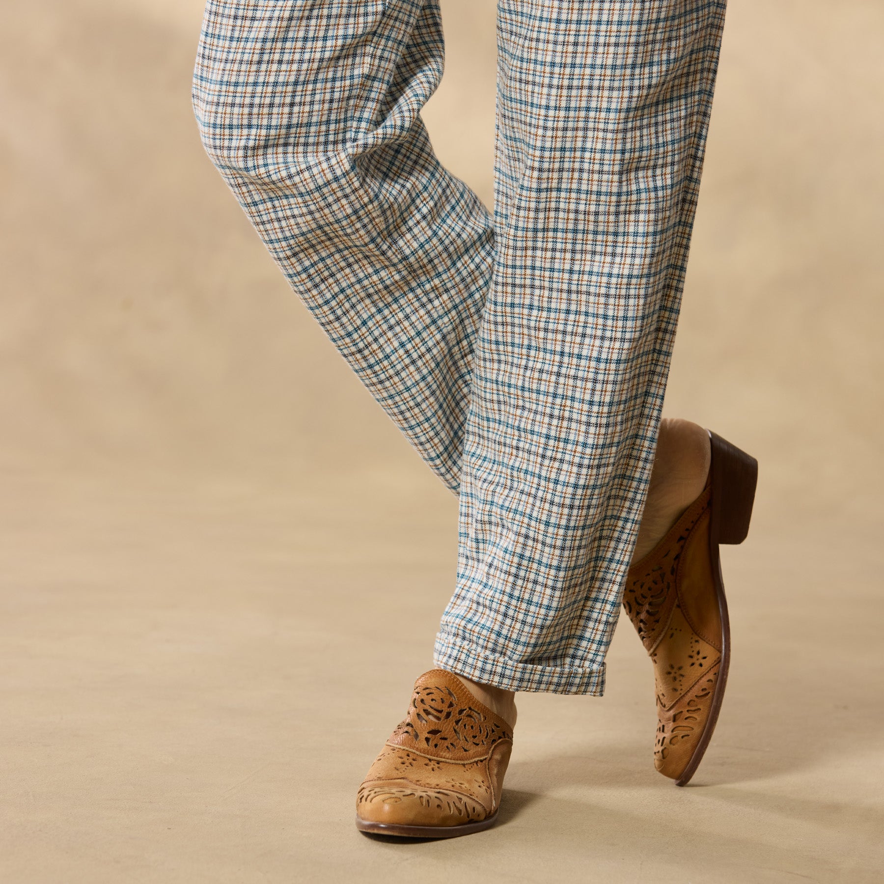 Just when you thought gingham couldn’t get ANY more easygoing. our Vivienne Pants entered the conversation. You’ll live in these pleated garment-dyed pants with a paper-bag waist and welt pockets in front and back. Cotton/linen. Machine wash. Imported. Exclusive. Sizes 2–16. 27 inseam.